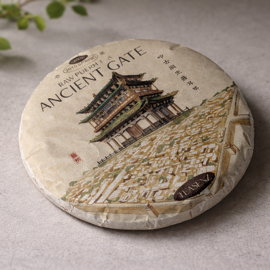 2010 Ancient Gate Yiwu Oud Gerijpte Rauwe Pu Erh Theekoek 200g